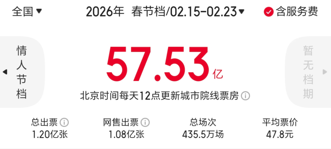 还有一点特殊的,今年春节档,全国影院一共排了435万场电影,创下了春节档放映场次的历史纪录,足可见扶持力度之大。