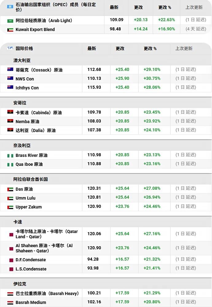 过去一周里,布伦特原油价格累计上涨了28%,这是自2020年4月以来最大的单周涨幅;而美国西德州中质原油(WTI)涨得更猛,一周涨幅达到35.63%,创下该期货合约自1983年上市以来的最高单周纪录。