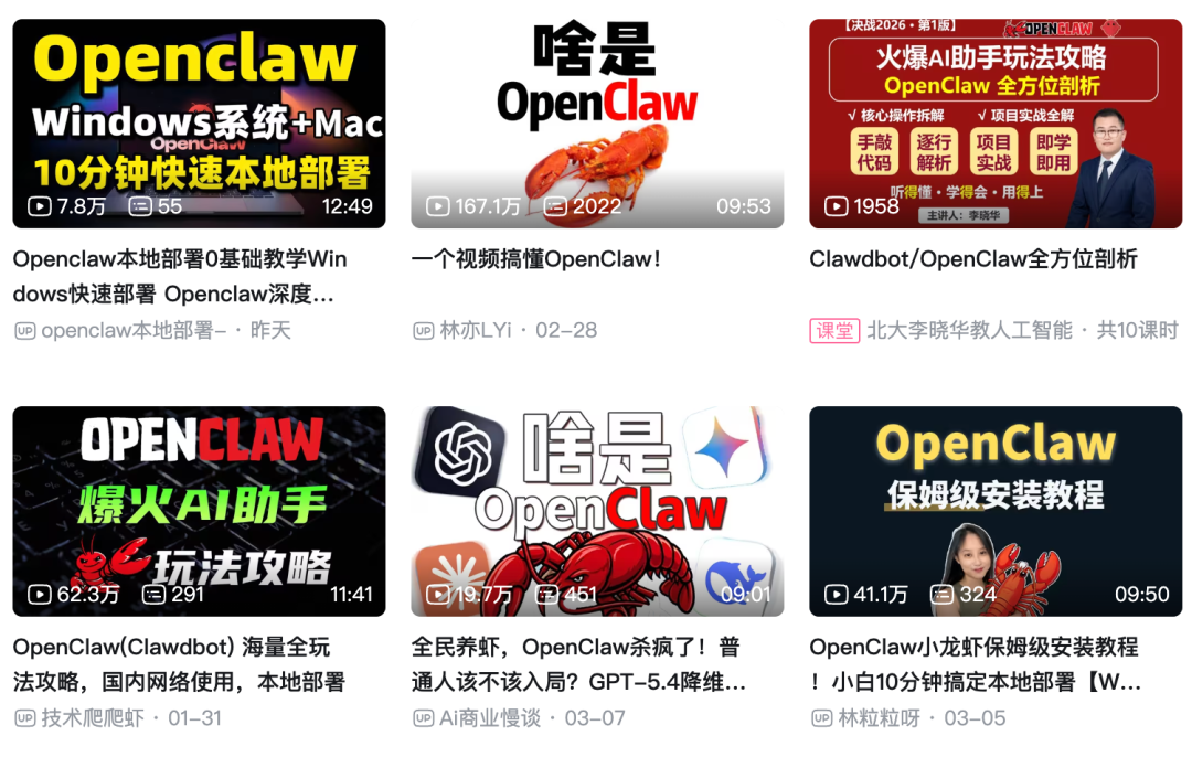 新品类如AI内容也在成为新的站内特色。每个月有超过1.2亿人在B站消费技术趋势、模型评测、应用指南等AI内相关容,前段时间OpenClaw爆火全网,一只龙虾出圈后,无数内容吻上来。