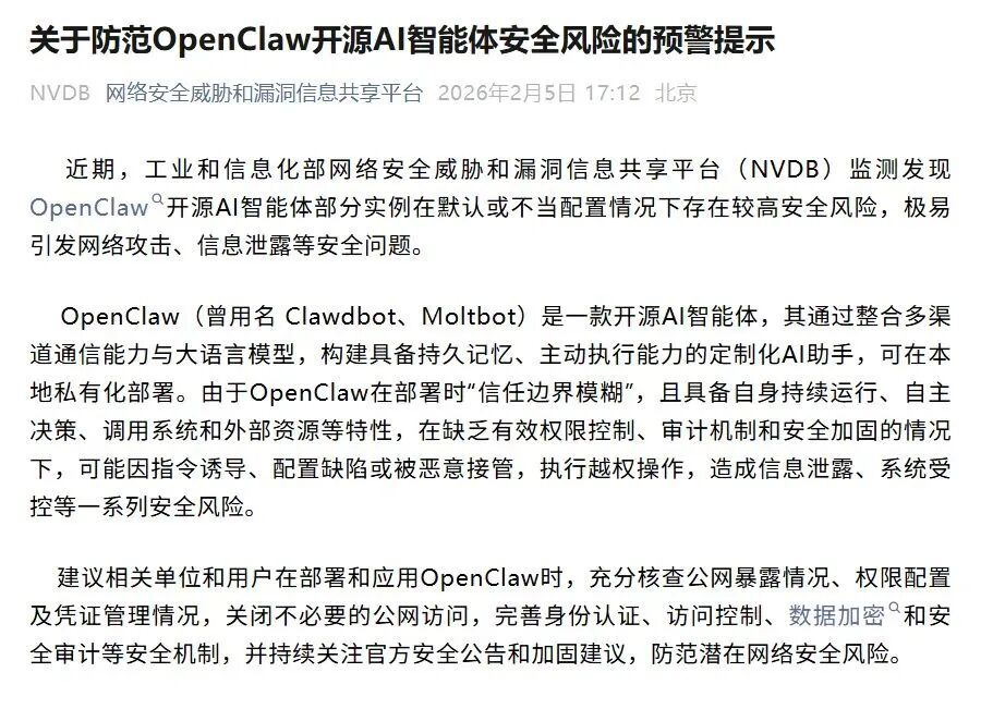 一边,是腾讯、阿里、字节、小米等大厂争先恐后地拥抱OpenClaw,把它集成进自家产品线,恨不得每个App都长出一只智能体触角。另一边,是工信部和网信办接连发出风险提示,措辞审慎,几乎是在对着整个行业说:别跑太快,小心摔跤。