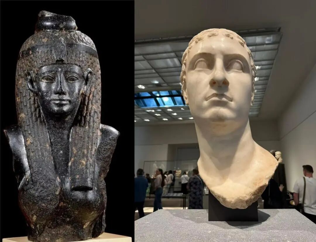 图注:左边:加拿大皇家安大略博物馆的埃及艳后雕像右边:阿布扎比海上卢浮宫里的埃及艳后雕像