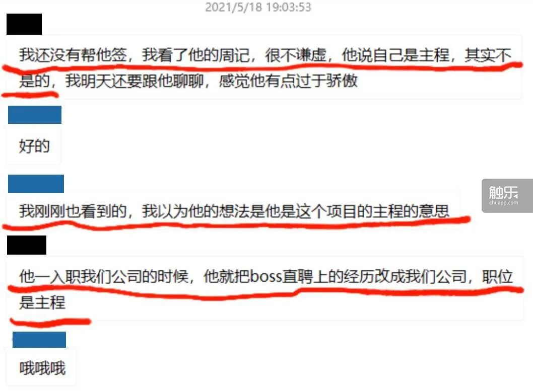 棉花告诉触乐,狸子是曾在胖布丁就职的员工。他出示了一些聊天记录,记录表明,2021年6月23日,狸子因为“经常迟到”“业务能力不足”“对外谎称自己是主程”等综合原因被公司开除。此后,狸子坚称自己遭到不公正对待,并开始在各种场合诉说胖布丁压迫员工。