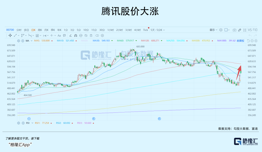 3月10日,腾讯控股高开高走,盘中涨幅一度超过7%,成交量急剧放大,隔夜美股腾讯ADR更是大涨超过10%。