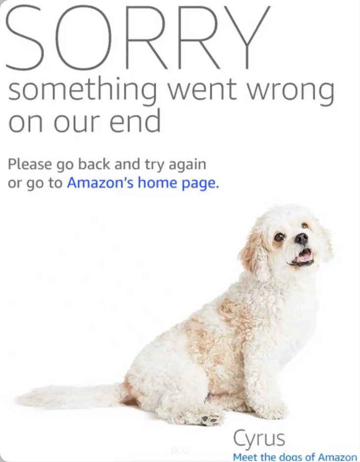 这是亚马逊的「招牌」,在网站崩溃的时候,掏出萌萌的小狗图,滑跪道歉,安抚用户。