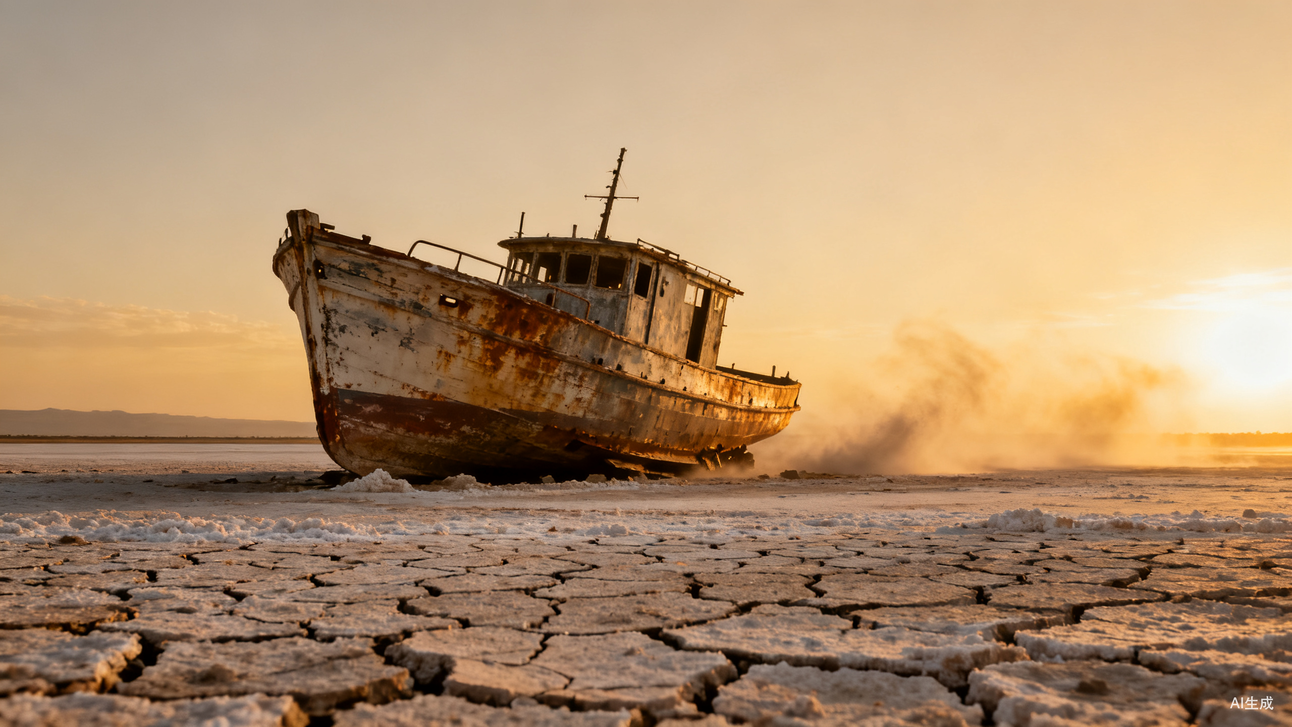 从苏联时代到当下,咸海作为一只巨大的环境牛马,任人宰割,如今他终于再也没什么利用价值了,只有每年数十万吨的盐尘被吹入大气,将他的残骸带往远方。