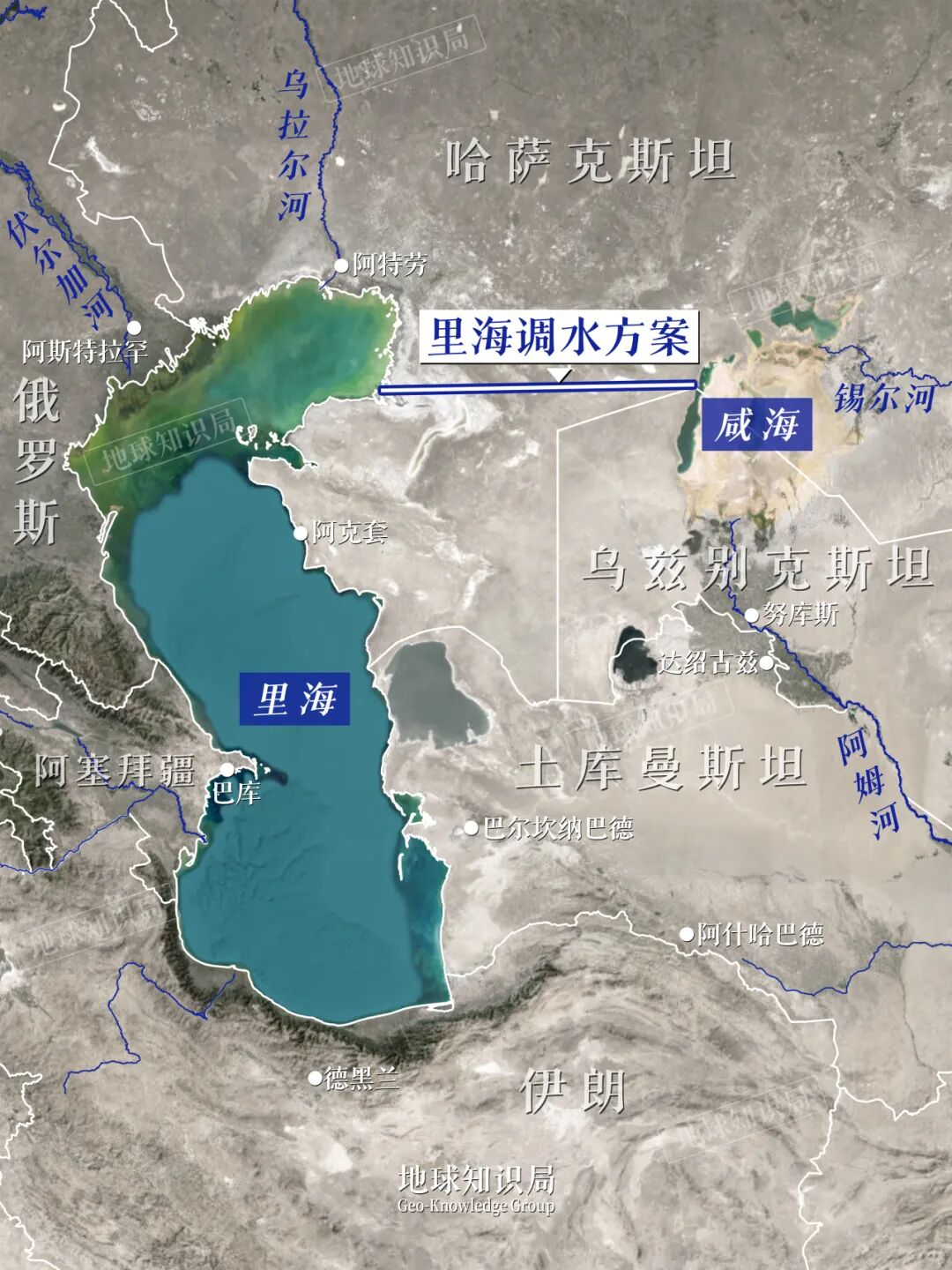 从西伯利亚调水毕竟太远,人们打开地图一看,旁边不就有个大家伙里海么,从里海修运河甚至能直通大西洋,双赢。