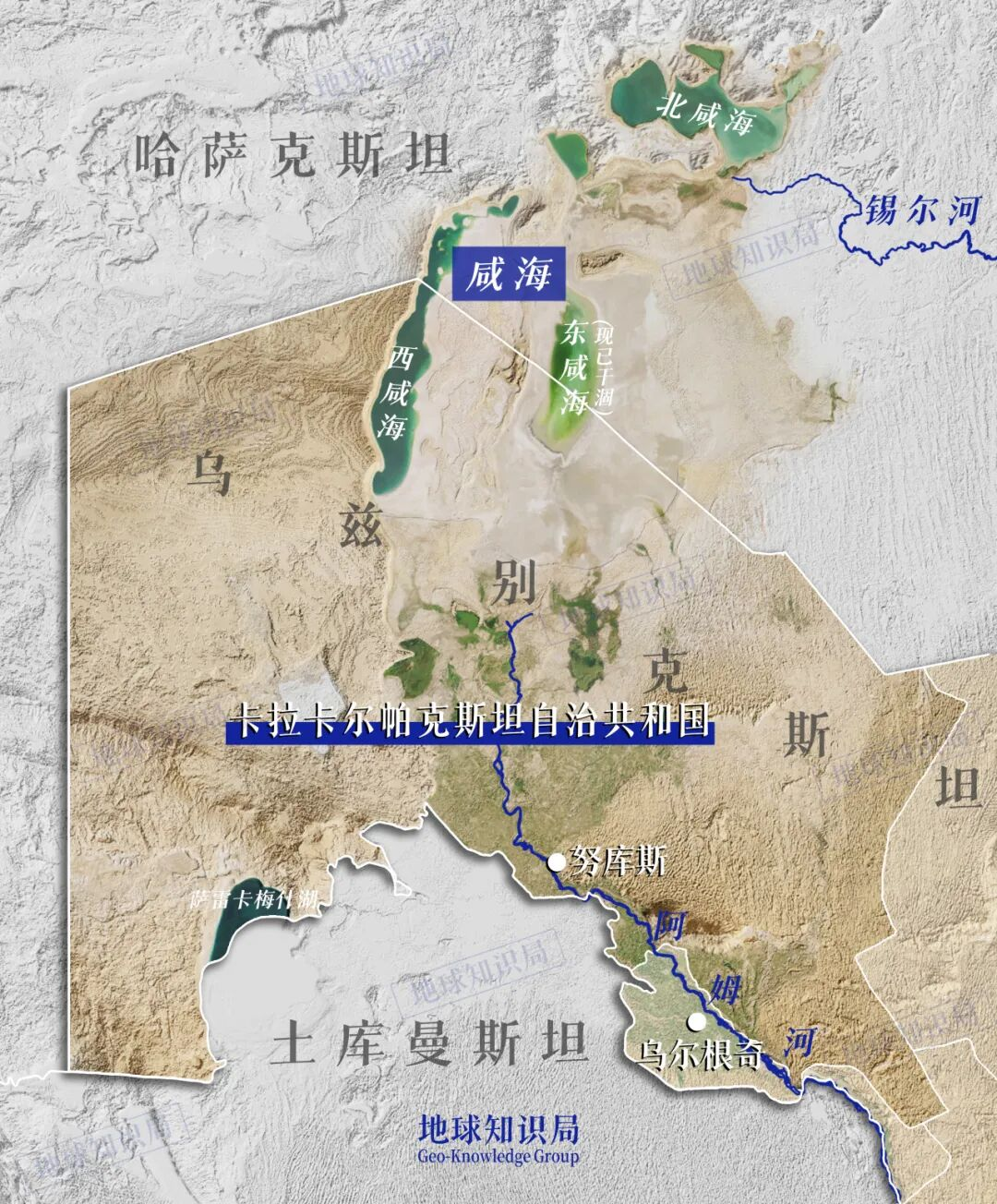 咸海大部分所属的“卡拉卡尔帕克斯坦自治共和国”,原本就是莫斯科为了在中亚搞平衡术从哈萨克划到乌兹别克的,当地在文化上更接近哈萨克人。