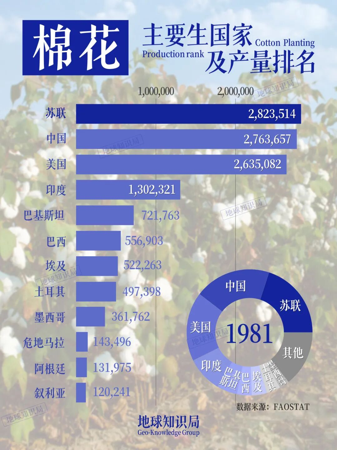 苏联一跃变成了棉花生产大国▼