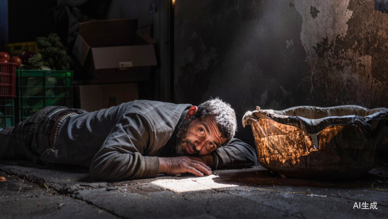 乞讨者匍匐在地上,将路人心中的怜悯变成他盆里的金钱,他看似什么都没付出,实则出卖了他的尊严。
