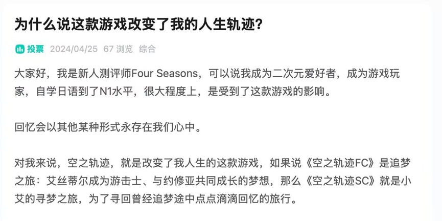以重制版为契机,新生代玩家正在不断加入轨迹的旅程。老粉丝乐于在论坛、社区中充当向导,安利推荐;一些资深玩家甚至把轨迹系列介绍给自己的孩子或晚辈,让不同年龄层的人一同感受这部宏大的冒险长篇。
