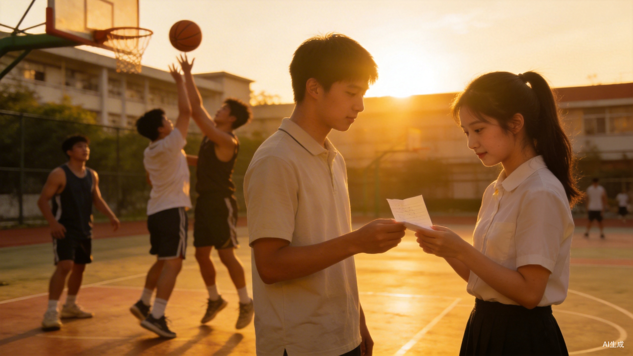 打篮球的就更不必说了。球场边永远站满了人。男生靠前女生躲后面,时不时三三两两窃窃私语,大概是暗恋要明盘了。个儿高的打球就是飒,轻轻一跃就能碰到篮筐;球技好的,运球过人像泥鳅钻豆腐;三步上篮的潇洒,身姿拉成一张弓,球出手那一刻,全场都屏住呼吸。