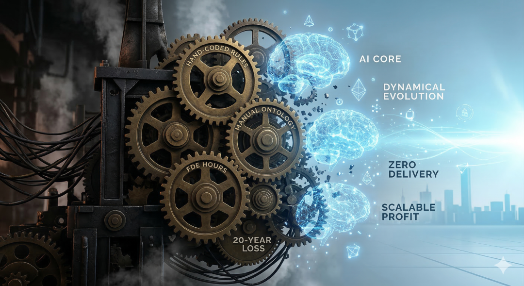 为了让系统理解复杂的业务逻辑,Palantir 必须派出大量拿着顶薪的驻场工程师(FDEs,这就是米国版本的“驻场工程师”),飞到客户的办公室里,手写规则,一个节点一个节点地去构建底层的数据映射关系——也就是所谓的“本体论(Ontology)”。