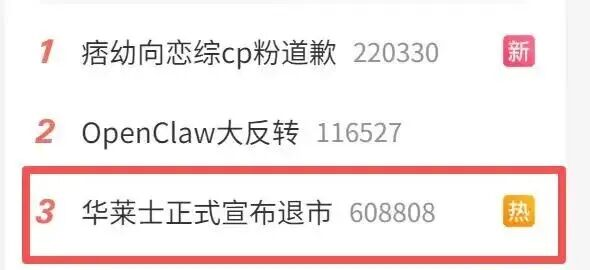 《新品略财经》关注到,3月11日,“华莱士正式宣布退市”话题冲上热搜,当天一度曾冲上微博热搜第三名,引发全网关注和热议。