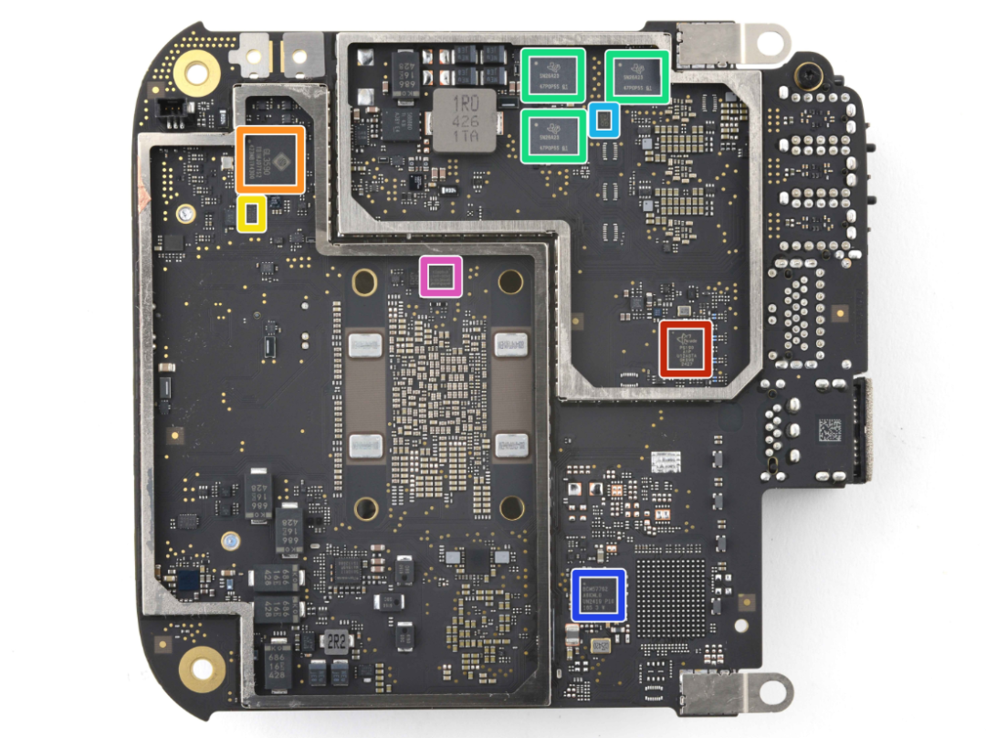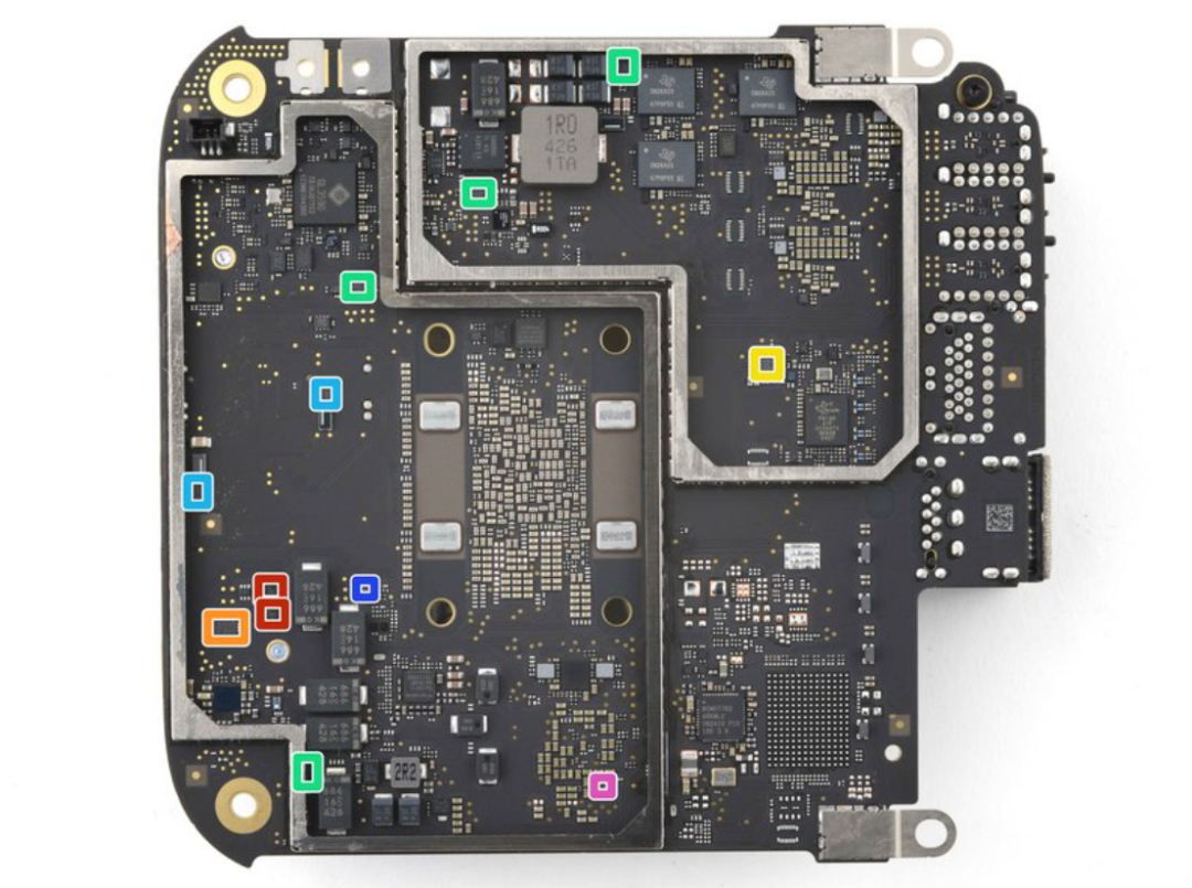 把视角拉回硬件,根据iFixit对Macmini M4(2024)的拆解,这台机器的核心包括Apple M4主芯片、Micron LPDDR5内存、SanDisk NAND闪存,同时还有博通千兆以太网控制器、USI无线模组,以及TI、ADI、Renesas、onsemi、Winbond、GigaDevice、Genesys等电源、接口和外围器件。