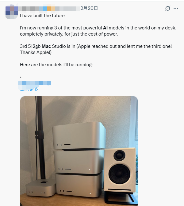 在X(原Twitter)上,多台Mac mini堆叠排列在一起的照片开始疯传,配文也充满了新技术浪潮初起时特有的兴奋感:“我的家庭AI算力中心上线了!”“未来CEO和他的员工们。”甚至还有人表示,“投资大脑,从投资硬件开始。”与此同时,科技博主们连夜赶制“Mac mini AI服务器搭建全攻略”,YouTube上迅速涌现出大量教程视频。