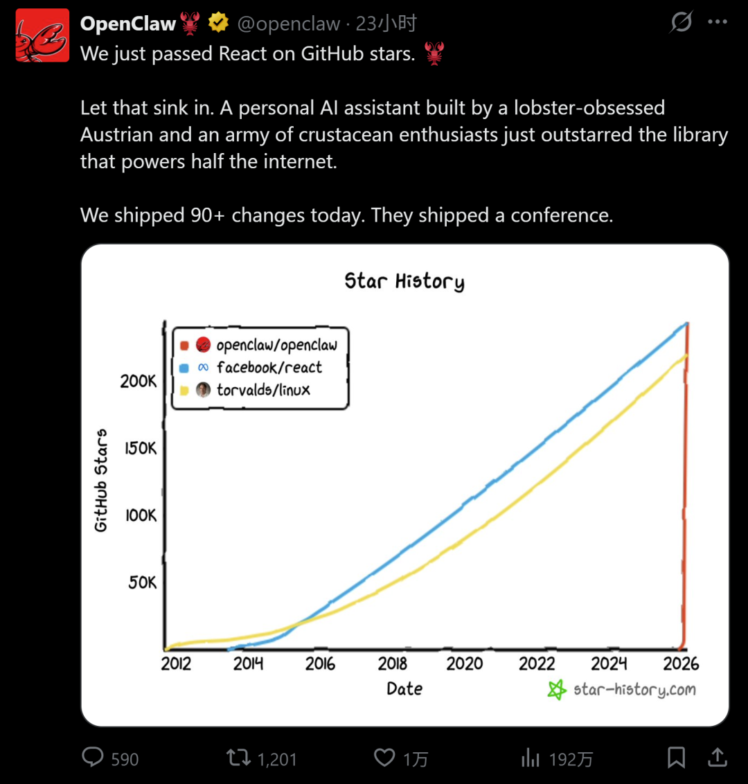 2025年12月,OpenClaw开发者彼得·斯坦伯格将项目代码开源到GitHub。凭借“让AI真正在你的电脑上干活”这一想象力十足的定位,迅速点燃了全球开发者的热情:短短几天,项目星标数就突破6万,3个月飙升至26万,创下现象级增长纪录。