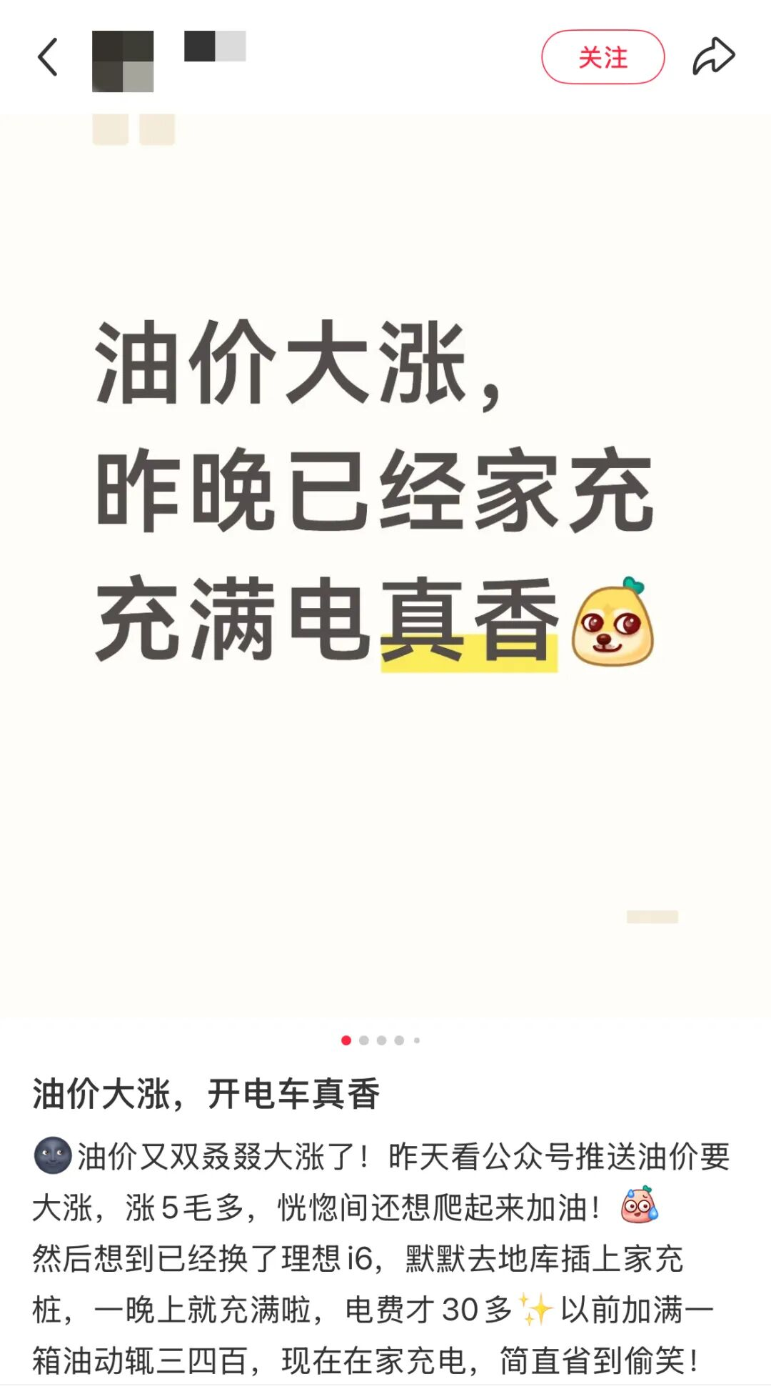 不少刚刚把油车换成电车的网友,似乎在偶然间“逃过了一劫”。油价调整前夜,他们在电车驾驶座上拍下油车挤在加油站前等候加油的场面,评论区下方满是一片赞叹,颇有一种“电车在汽油涨价面前完全胜利”的感觉。只不过这些笔记并没有告诉吃瓜看乐子的网友,油价在猛涨的同时,电车也要准备涨价。