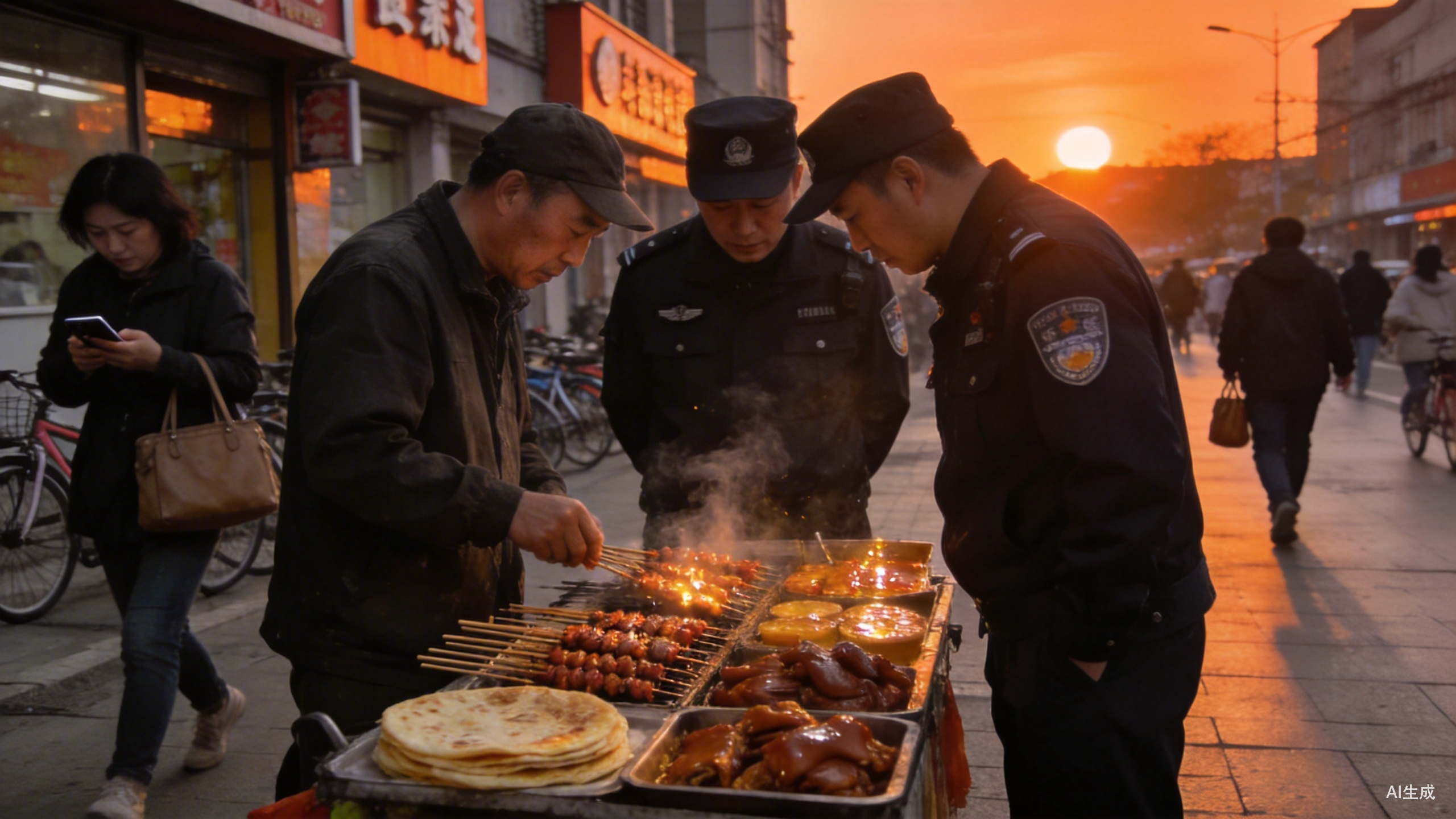 第二,为什么他们跑到另一条街就“安全”了?这很可能涉及行政区划的交界地带。不同区域的城管执法范围是有界限的,超出自己的辖区就没有执法权。摊贩们显然摸清了这一点。而且,摊贩内部有一套非常灵敏的“情报网络”——他们熟悉本区执法队员的编号、执法车辆的号牌。如果是别的街道或别的区的执法车路过,他们甚至可以无动于衷。他们还会在群里互通信息,比如哪里人流多、哪里好卖货,然后迅速迁移过去。整个过程,其实就是一场持续上演的“猫鼠游戏”。