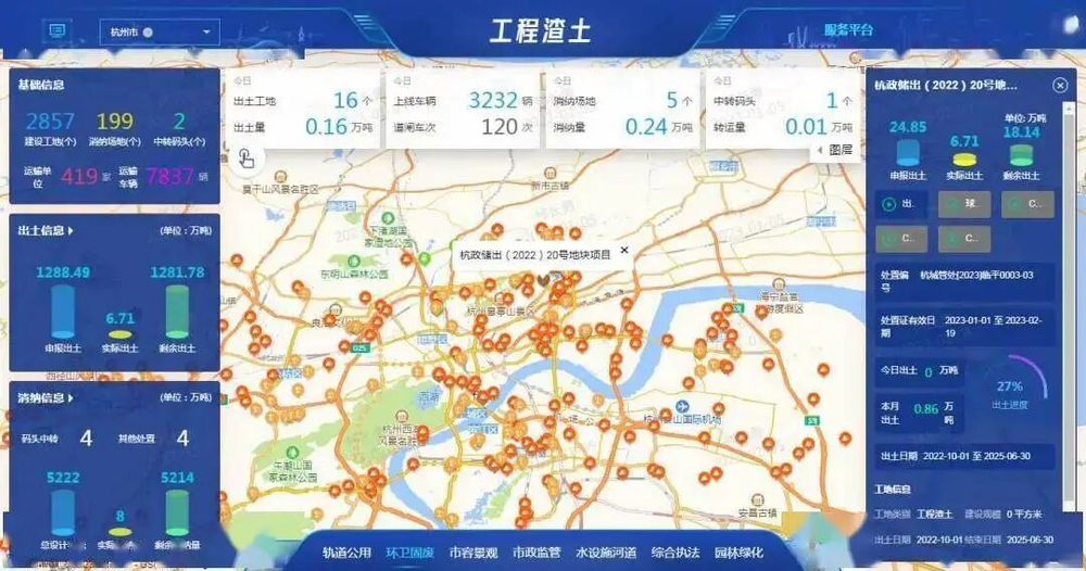 为进一步加强全市工程渣土全过程、全闭环、精细化、数智化管理,杭州市城管局搭建了全市统一的渣土监管服务平台。资料图来源:杭州城管