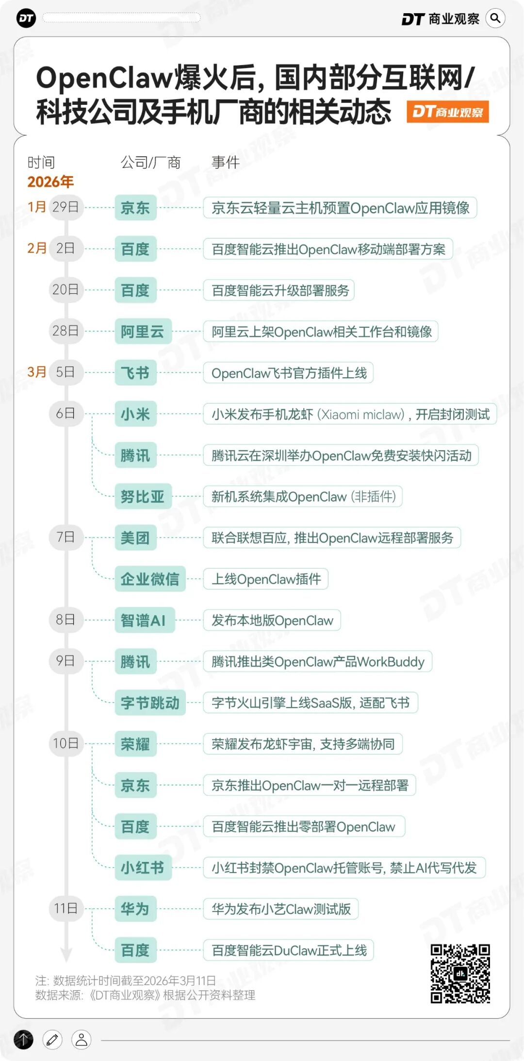 但这还不够,真正让龙虾从小众工具演变成全民热点的,是大厂的集体下场。