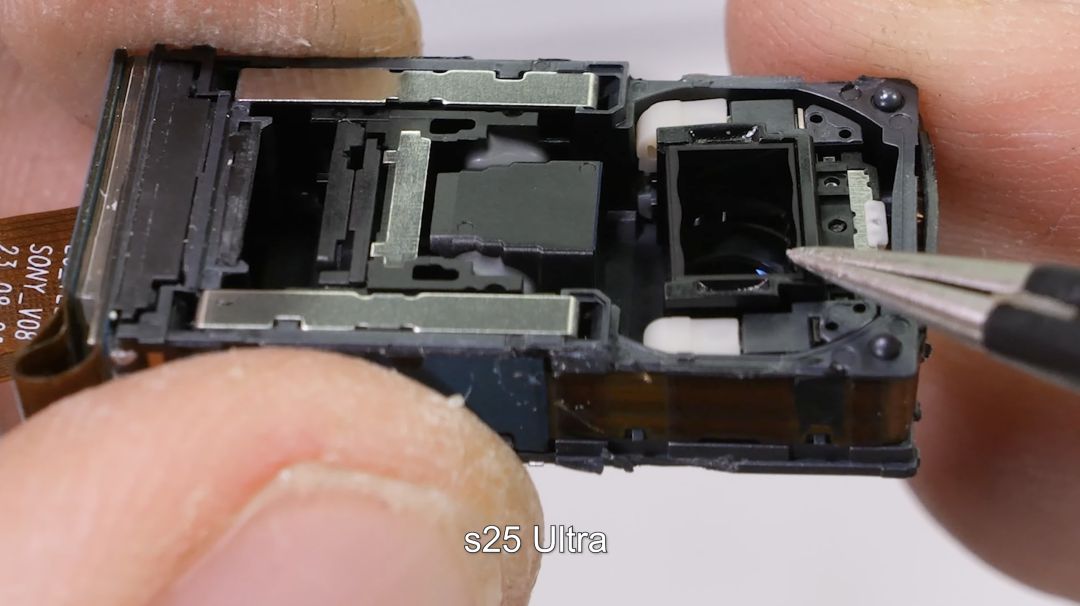 不同于常见的方形潜望镜,S26 Ultra的5倍长焦呈圆形开孔,结合增加的高度,基本可以判定S26 Ultra使用了ALoP技术。