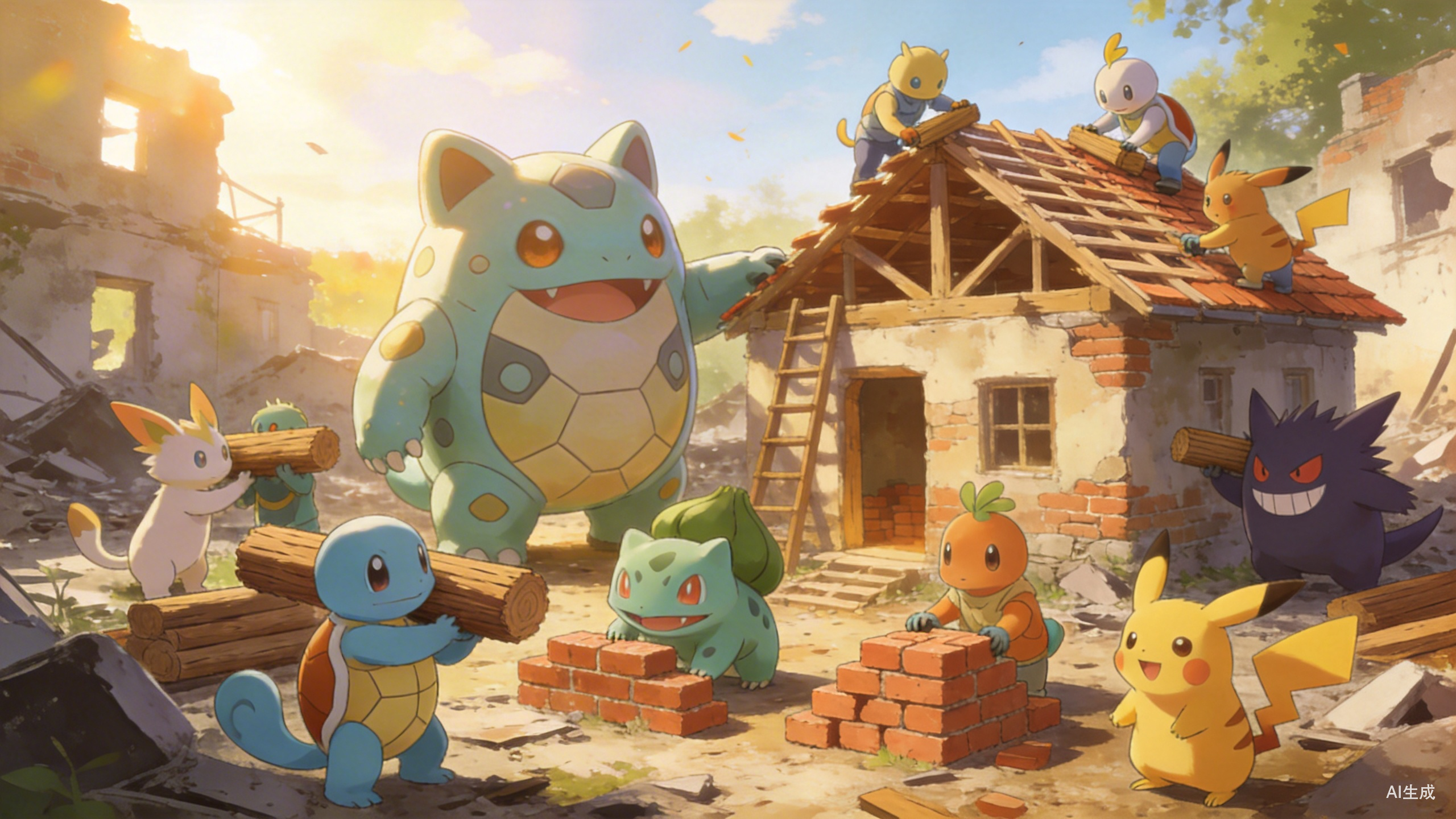 土地干旱时,它可以变成杰尼龟,用喷水润湿大地;需要搭建栖息地时,又能借用妙蛙种子的播种能力,直接铺出一片草坪。