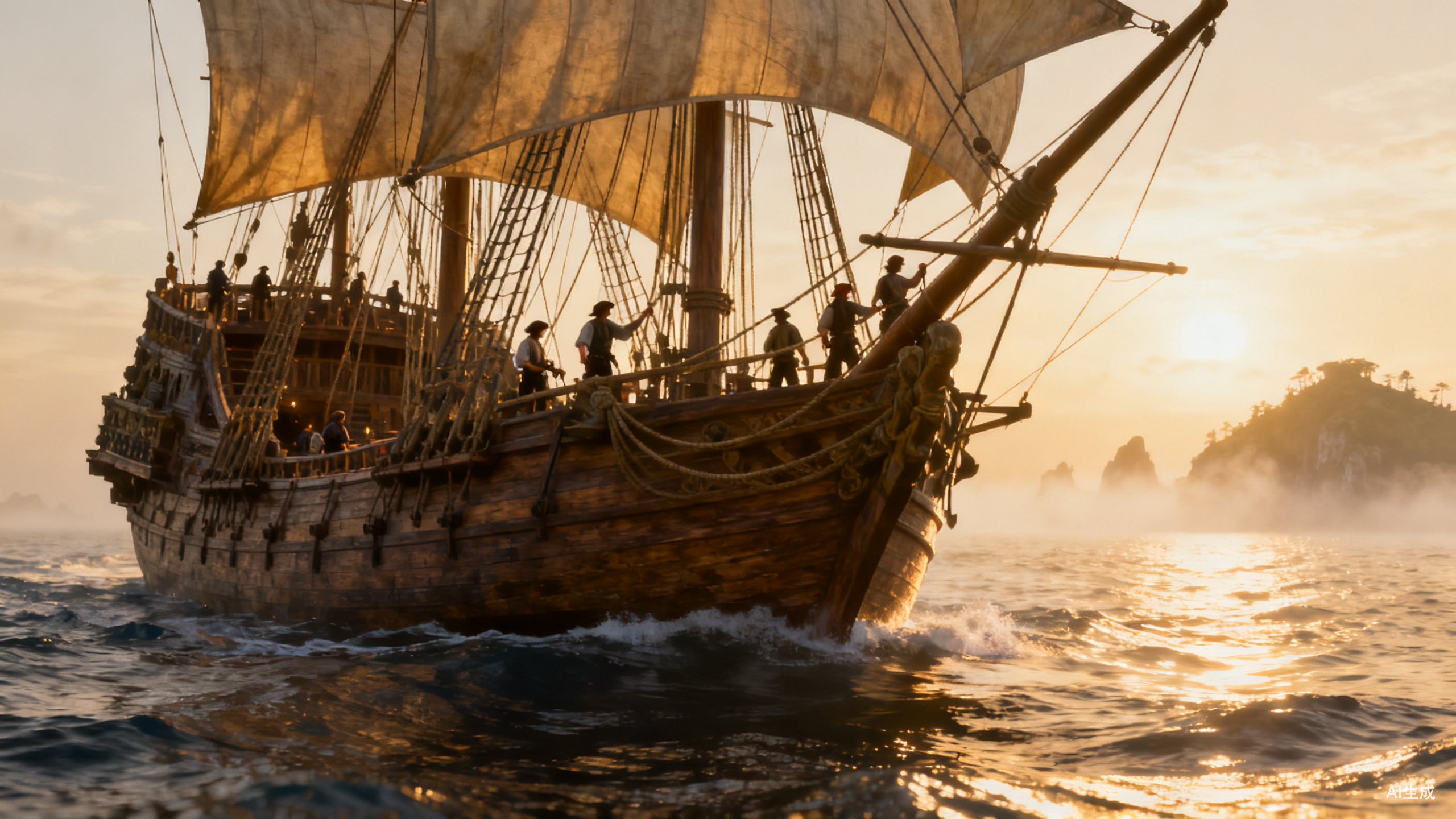 这种设计上的伏笔,直到第一艘风帆战舰下水时彻底图穷匕见。帆船优秀的性能和各种便利化的功能,让人突然觉得自己苦哈哈地造房子像是一种画地为牢,不如像海盗一样自由奔放一把,当大海的主人。