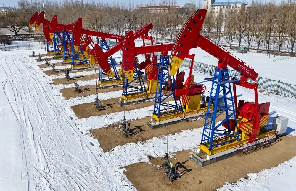 这是3月6日在大庆油田第六采油厂拍摄的丛式井生产现场。新华社