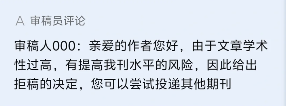 毕竟“文章学术性太高,有提高我刊水平的风险”。
