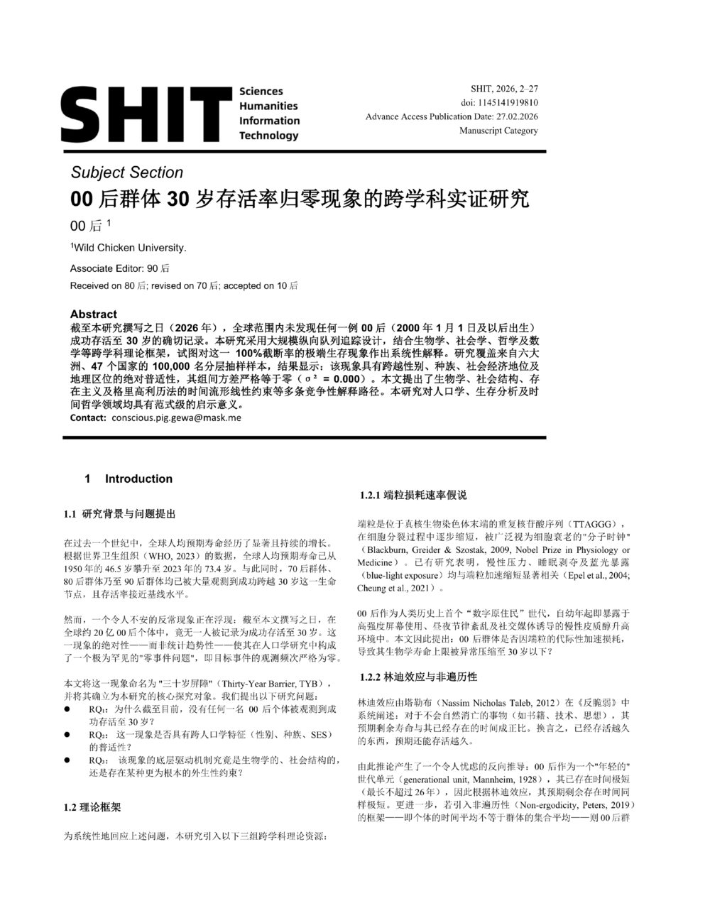 2026开年之际,全世界各行各业的硕博学子被论文折磨得陷入癫狂,几位能人异士灵机一动,创办了学术界最没用的“底刊”。