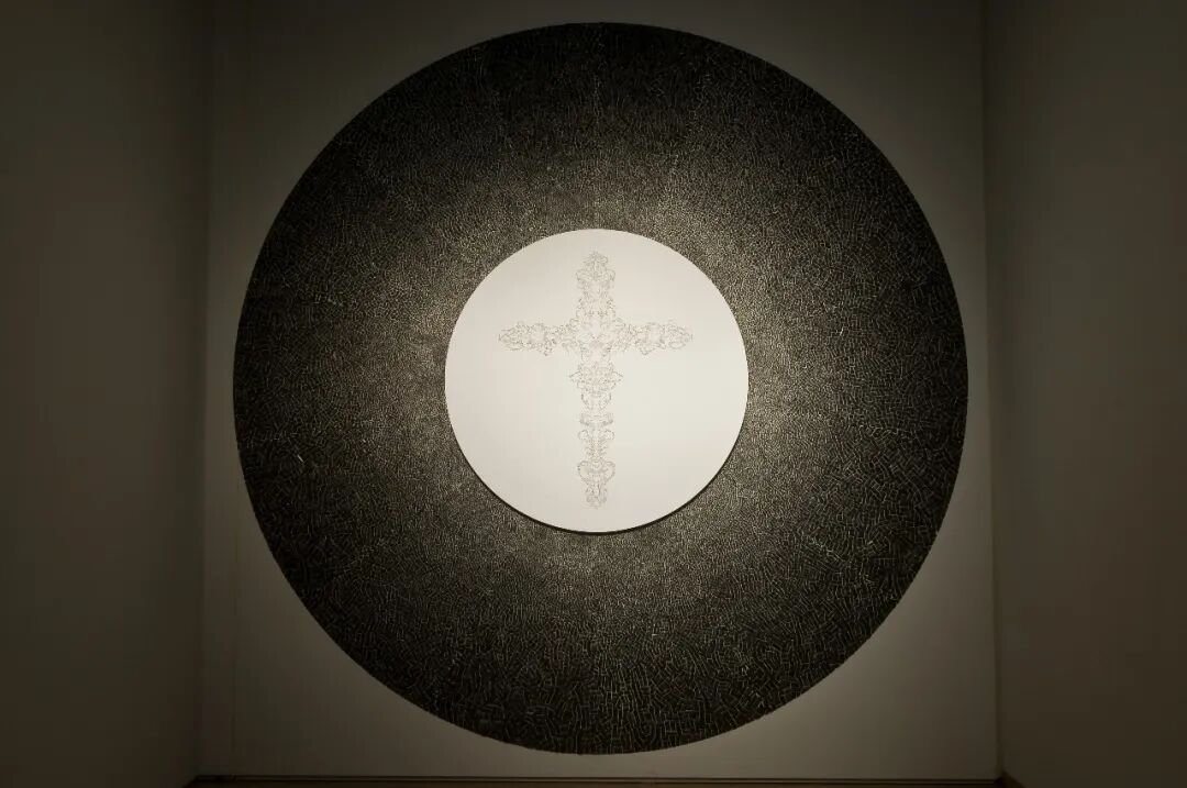 山上渡,《背面的正面》(2009),木板上彩笔、木炭,487cm x 487cm x 5cm。