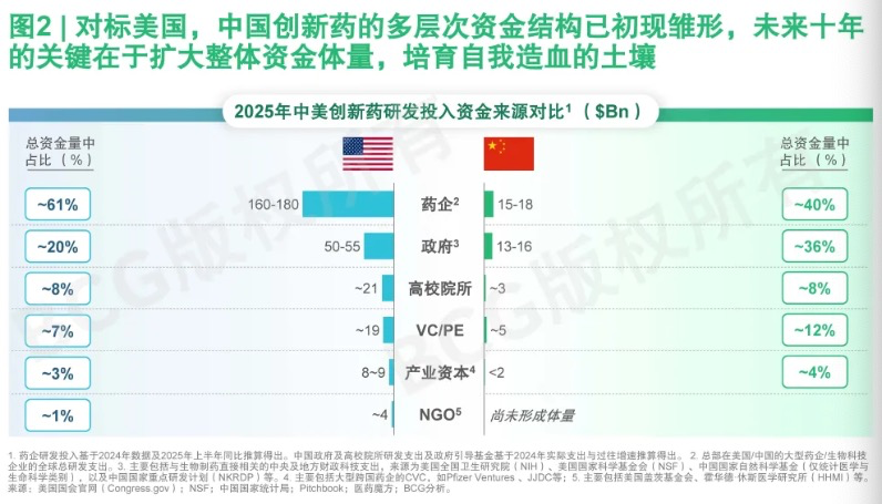 中国创新药企业造血能力有限,企业自身研发投入在2025年仅占约40%,创新药资金来源本质上仍高度依赖政府与外部资本。