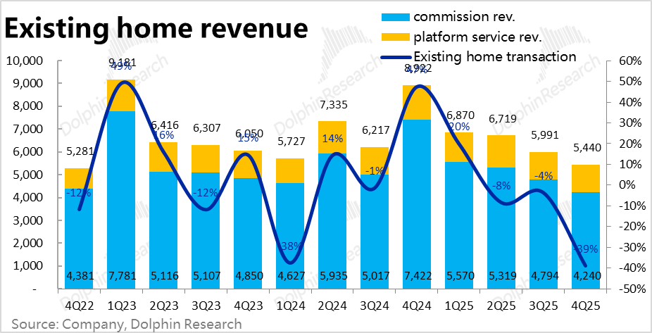 在GTV和综合佣金率双双同比下滑的共振下,本季存量房业务营收同比放大到了39%。