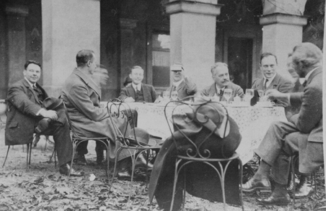 ▲慕尼黑物理学家们在1911年左右的霍夫花园咖啡馆(sommerfeld.userweb)
