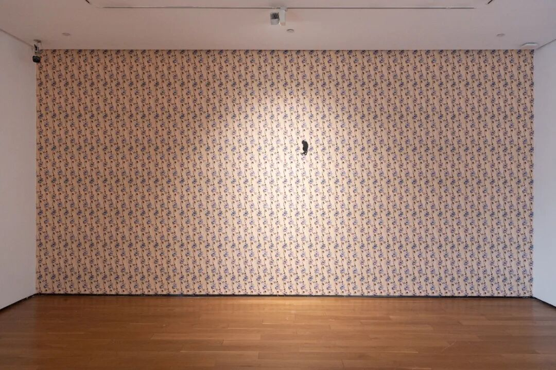 她与中国绣娘合作的布料装置作品,选取中国日常的窗帘、墙布,由绣娘以传统工艺绣上她作品常出现的身体外框。这些作品被放置在最重要的中央展厅,身体的轮廓几乎隐匿在竹叶与山水的墙布纹样之中,这恰恰旨在邀请观众与作品建立一种更亲密的关系。观众必须走进这些布料装置,才能看到窥见其中的身体。
