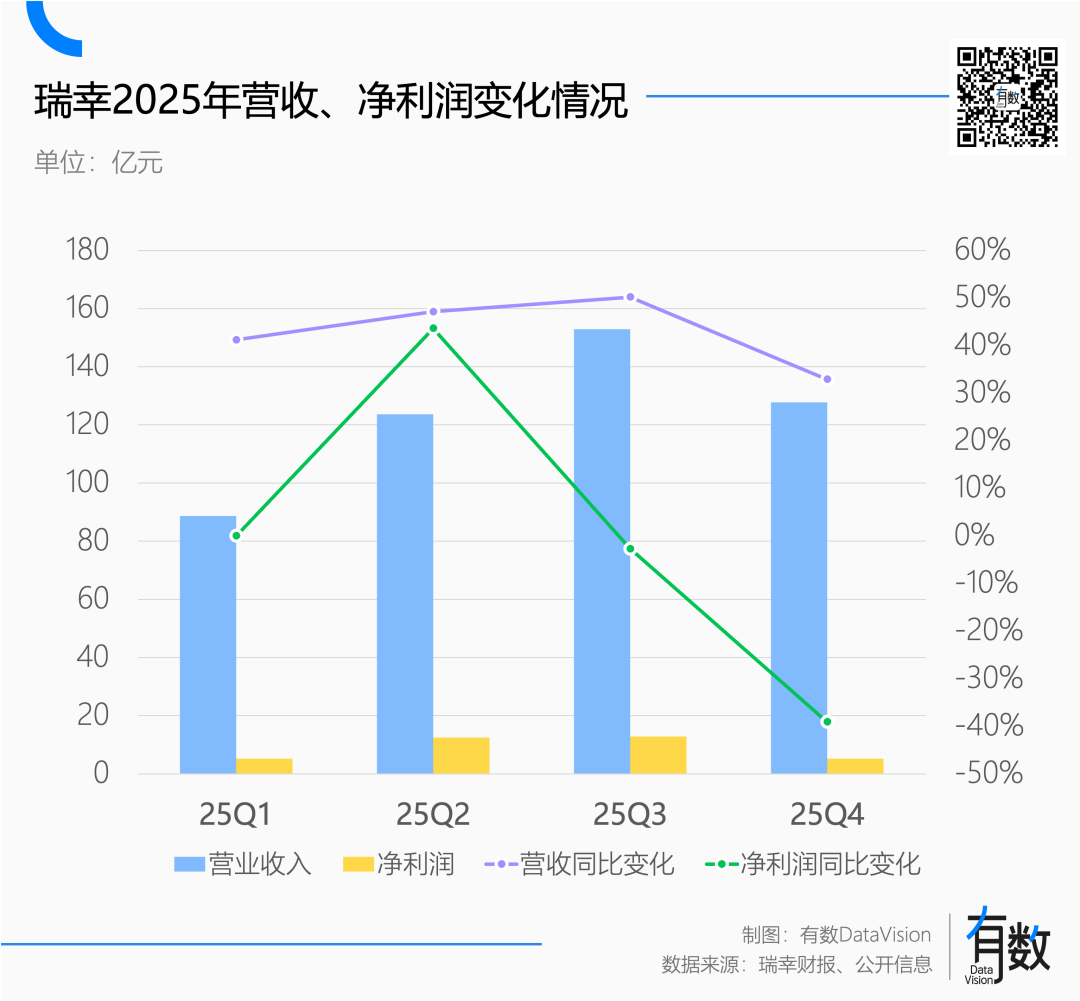前阵子瑞幸交出Q4财报,账面营收和实际利润走向两个极端:营收冲到了127.8亿再创新高,净利润反而掉头向下到5.18亿,同比下降39%[1]。