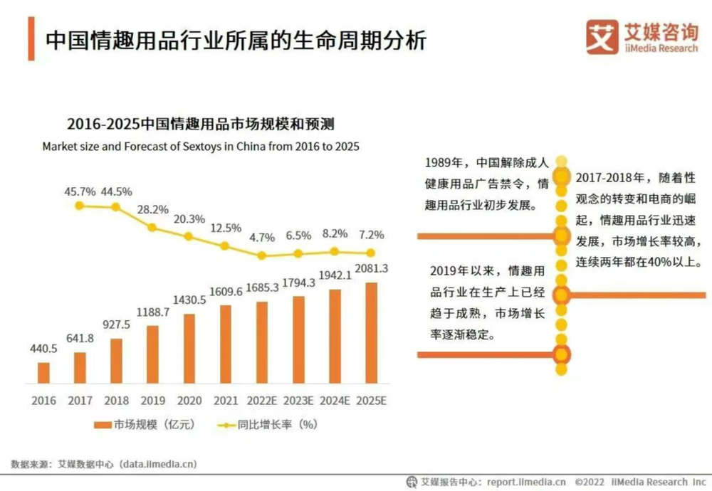 《2024-2025年中国情趣用品行业及消费行为调查分析报告》显示,自2019年起,情趣用品市场规模就稳定增长,2024年已经超过1900亿元,相比2019年增长超60%。