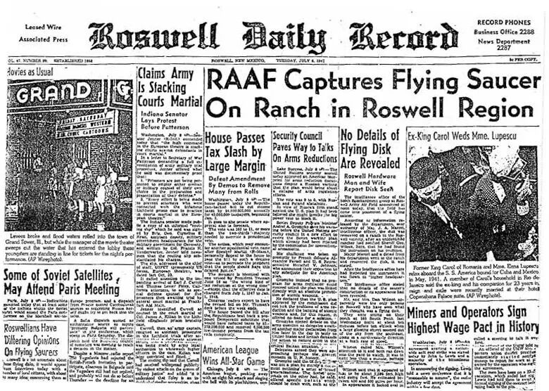 1947年7月8日,罗斯威尔陆军航空基地公共关系办公室发布了一份震惊世界的新闻稿:“罗斯威尔陆军航空基地的第509轰炸大队今天捕获了一个飞碟。”消息一出,举世哗然。