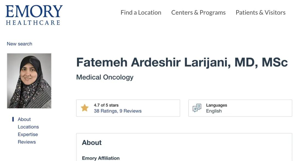 由于其父主导了今年1月的镇压,埃默里大学收到了34000人以上联名抗议书,被迫辞退了她。不过,现在法蒂玛仍然在位于马里兰州的国家癌症研究所的官网上,这可能是她的新的工作,官网介绍说,她“主要临床研究方向是胸腔肿瘤学,涵盖肺癌、间皮瘤和胸腺肿瘤”。资料还显示,早在2021年,法蒂玛就已经获得了美国永久居民身份。