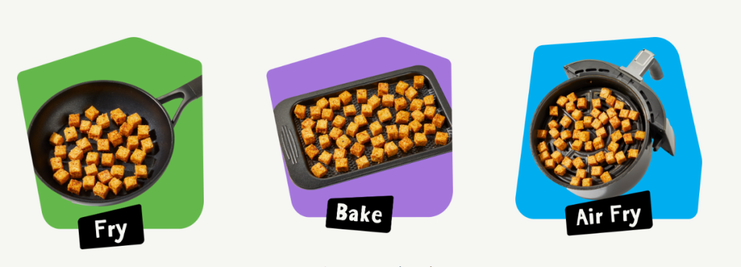 The Tofoo Co官网教的三种豆腐烹饪方式:煎(Fry)、烤(Bake)、空气炸(Air Fry)