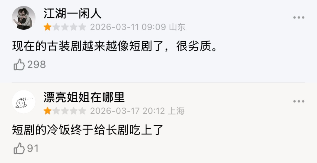 “长剧向短”的浪潮席卷而来,创作者的选择本无对错。但在目前的主流观众话语里,“像短剧”显然还是一个负面色彩多于正面认可的标签。