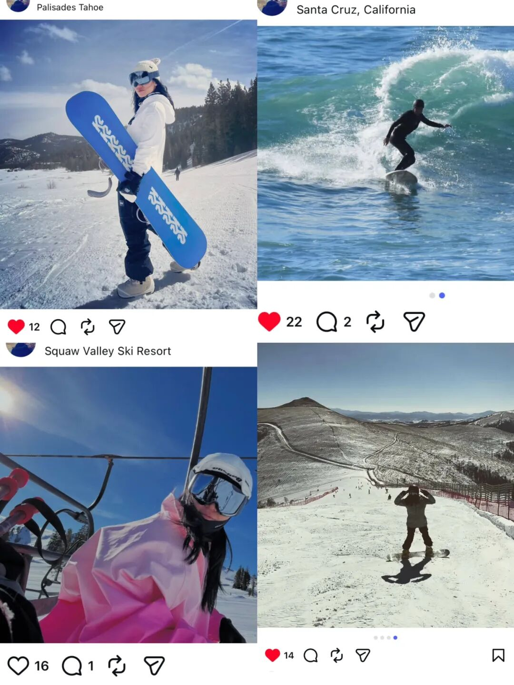 她会为了冲浪搬去Santa Cruz,为了雪季调整整个生活节奏。工作只是生活的一部分,而不是生活的中心。所以她的日子看起来很简单,但整个人是有光的,因为她不是在消磨时间,而是真的在过喜欢的人生。