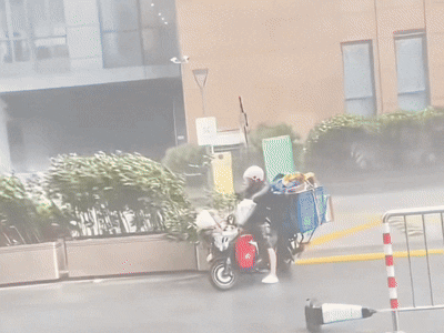 骑手在暴雨中送货 (非小牛)来源抖音