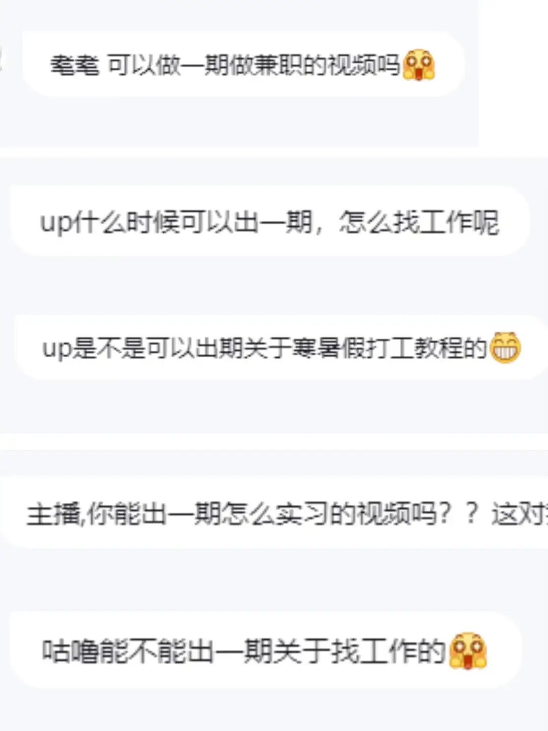 “每天打开后台一看,都在问在校生如何找兼职、找实习,还有应届生如何找工作。”“咕噜耄”说道。