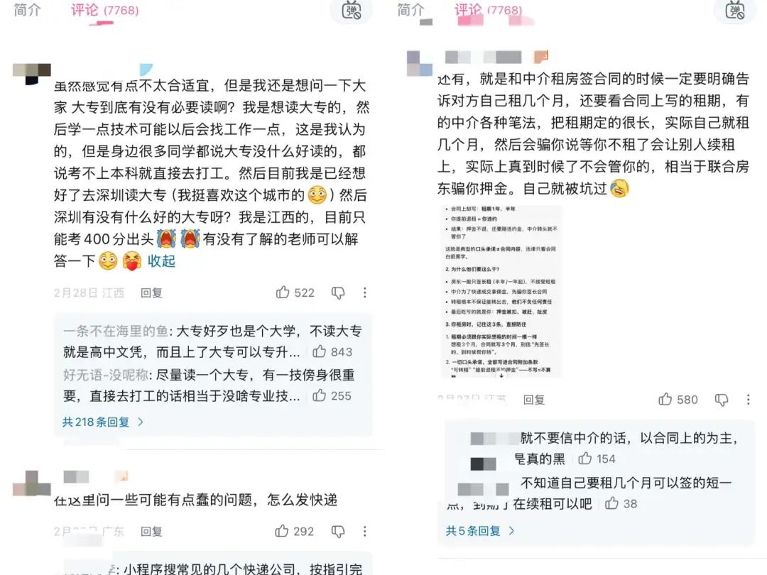 其评论区更是精彩,不少网友会写上百字小作文现身说法,分享自己的租房避坑指南;也有人直接将房子照片放在评论区,在线求问网友租哪套合适;还有人继续求问如何体检、寄快递等问题。