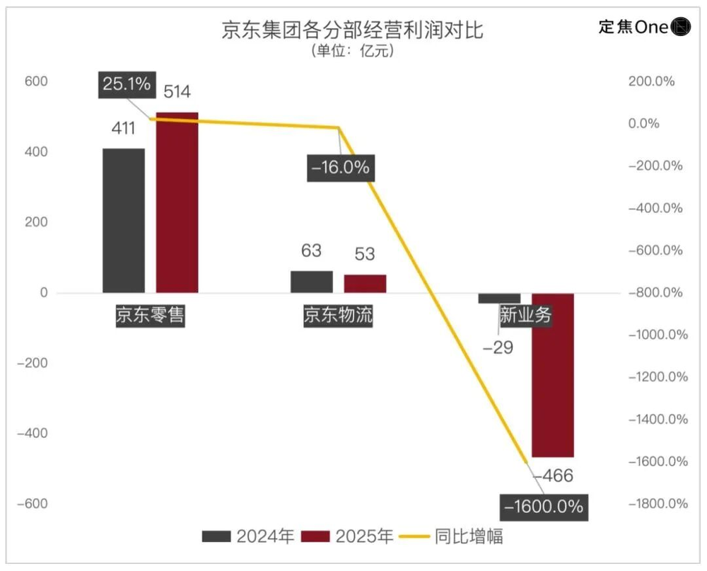 (外卖大战导致京东新业务板块亏损急剧扩大,利润大幅收缩,图片来源:定焦ONE)
