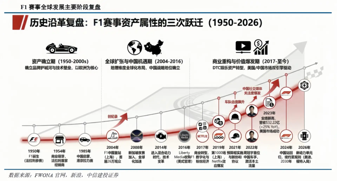 直到2017年自由媒体集团以约80亿美元总估值对F1全面接管之后,F1才从小众精英竞速赛事,转变为如今的全球顶级体育娱乐IP。