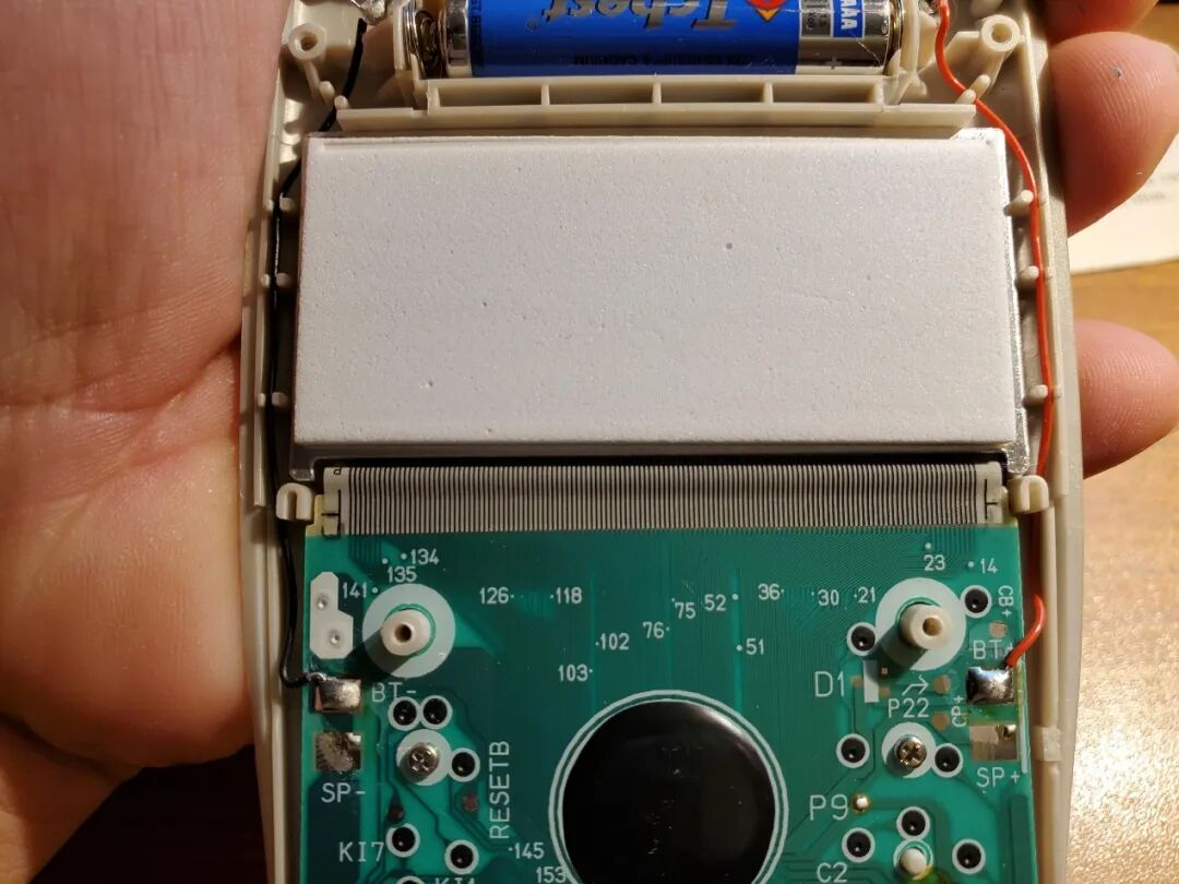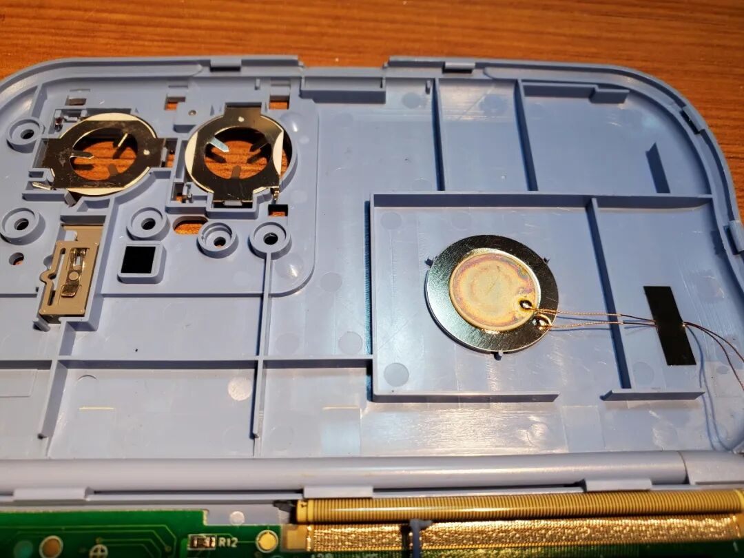 再来看另一个,也是有蜂鸣器,背部的海绵已经老化的一动就散了。屏幕排线已经发黄。