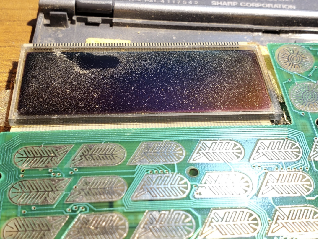 右上角还有一个C2电容,牛屎上半部分供屏幕显示,下半部分按键,这个LR44我昨天去买了两颗,8毛一颗,回来安装上以后,屏幕是显示不全的,应该是屏幕连接的排线有问题,所以显示不全,毕竟已经是30多年前的计算器,留着没啥用,直接丢了,卡西欧计算器是屏幕完好的,留着使用,其他的都已经丢了。