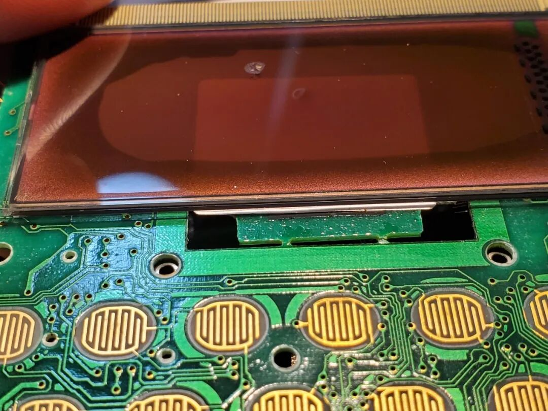 LCD柔性排线连接区(金色):这是连接主板和液晶屏的FPC排线(柔性电路板),很常见,容易因折叠老化而接触不良。